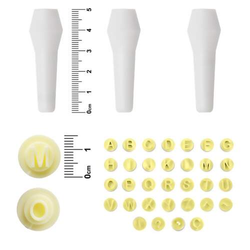 Descrição Kit Carimbo Letras para Confeitaria 1,5cm Amarelo 35 Peças