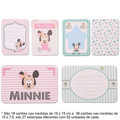 Descrição Kit Cartões para Scrap Momentos Baby Minnie e Mickey FL