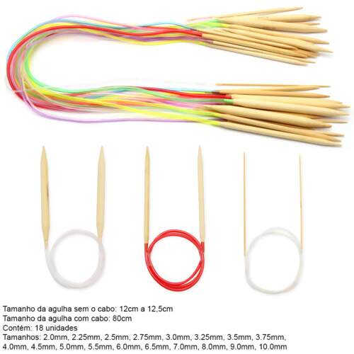 Kit de Agulhas Circular Tricô Bamboo 80cm com 18 Und