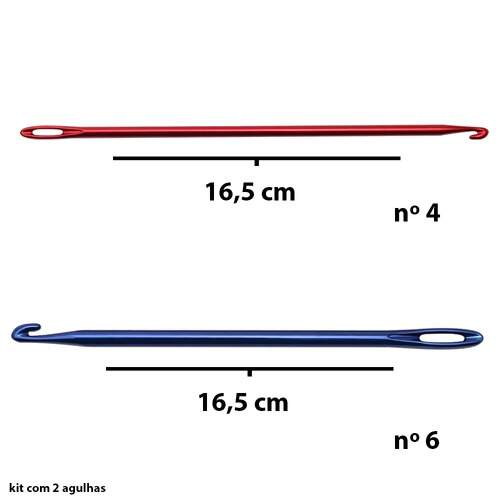 Contém 2 agulhas nos tamanhos: Vermelha: 4,0mm e Azul: 6,0mm