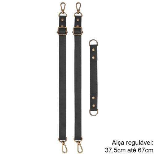 - 1 Alça de mão com argola e rebite nas extremidades no tamanho de 19cm de comprimento por 2 cm de largura.
