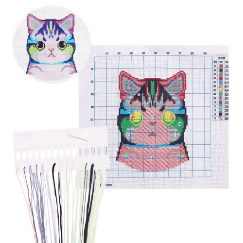 Kit de Bordado Básico para Iniciante sem Bastidor Gato 0101 FL
