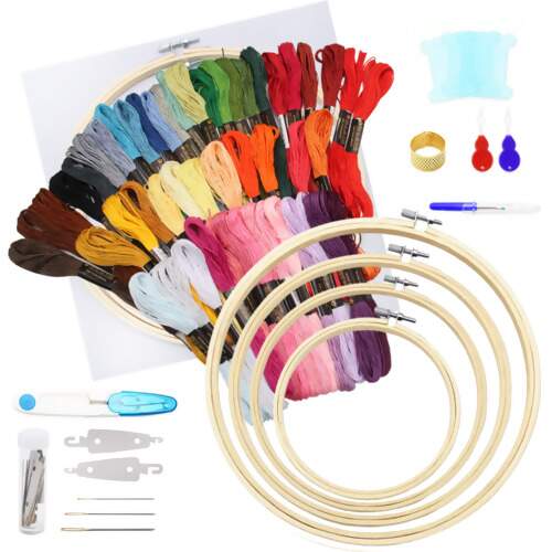 O Kit de Bordado com 50 Meadas, 5 Bastidores e Acessórios é perfeito para iniciantes e apaixonados por bordado. Inclui 50 meadas de cores vibrantes, 5 bastidores de tamanhos variados e acessórios essenciais para facilitar seus projetos. Ideal para criar peças únicas e personalizadas com praticidade e criatividade.
