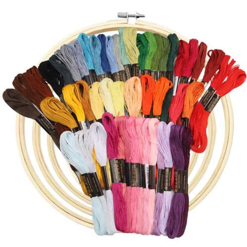 Kit de Bordado com 50 Meadas, 5 Bastidores e Acessórios