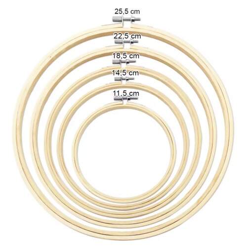 - 5 Bastidores de Bambu: 25,5cm, 22,5cm, 18,5cm, 14,5cm, 11,5cm