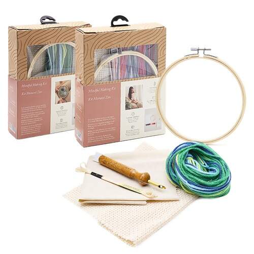 Relaxe através dos pontos rítmicos do bordado punch needle à medida que este moderno desenho floral toma forma sob os seus dedos. Este kit punch needle foi concebido para proporcionar uma experiência de bordado relaxante como parte da nossa gama Mindful Making.