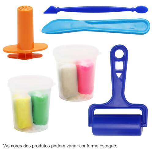 Com moldes e acessórios incríveis para modelar, as crianças podem soltar a imaginação com este kit. Ajuda no desenvolvimento motor e sensorial, além de estimular a criatividade. As massinhas são super macias e tem cheirinho de tutti-frutti. Não comestível.