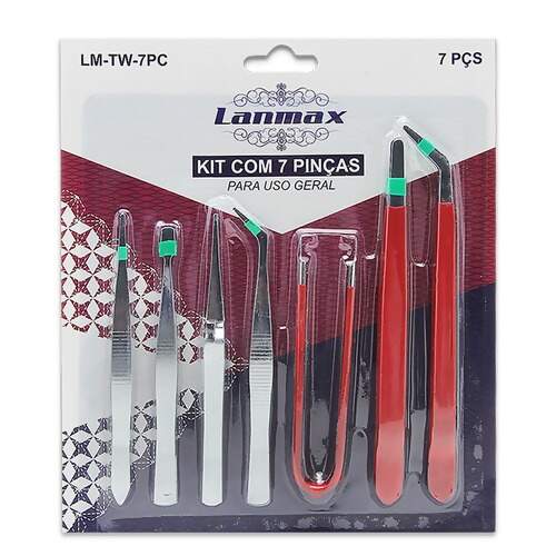 Kit com 7 Pinças, ideal para objetos pequenos e trabalhos delicados e precisos. Para uso geral.