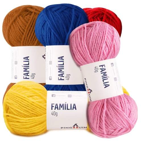 Entre os fios mais tradicionais da Pingouin, o Família é o que rende mais em trabalhos manuais. Feito em 100% acrílico, este fio é ideal para a criação de malhas, produtos para tapeçaria e trabalhos manuais. Uma blusa feminina pode ser confeccionada com dez novelos de fios Família.