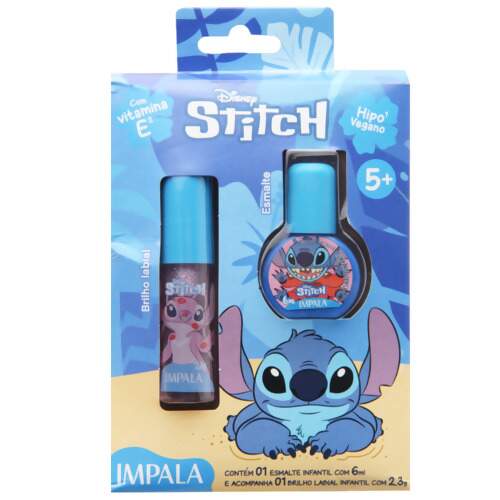Kit Infantil Impala Disney Stitch Esmalte e Brilho Labial