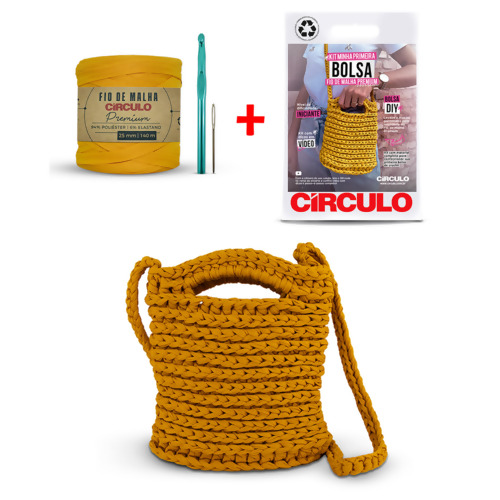 Kit Minha Primeira Bolsa Circulo Com Fio de Malha Premium 01- 1748 Bolsa Curry