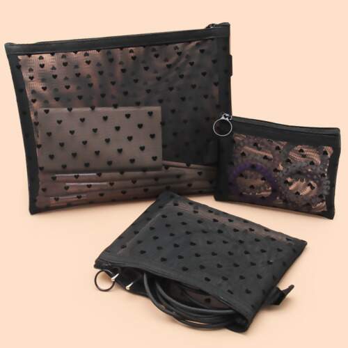 Descrição Kit Necessaire Bolsa Organizadora Mesh Coração com 03 Und