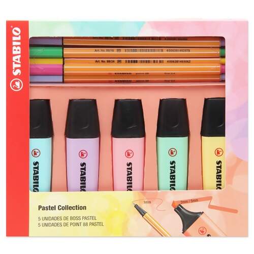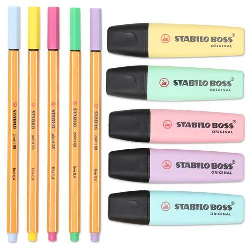 Kit Stabilo Pastel Collection com 5 Stabilo Point 88 + 5 Stabilo Boss