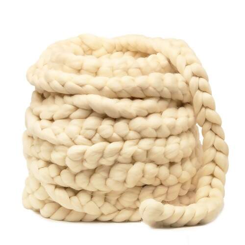 Lã especial para tricô gigante e outros tipos de artesanatos. Mechas de lã natural sem tingimento para fiação manual em roca ou fuso, também para trabalhos de feltragem com água ou com agulhas. Mecha contínua com 2kg de lã, com comprimento aproximado de 80 metros e acondicionada em formato de corrente para facilitar o uso.