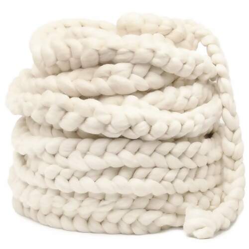 Lã especial para tricô gigante e outros tipos de artesanatos. Mechas de lã natural sem tingimento para fiação manual em roca ou fuso, também para trabalhos de feltragem com água ou com agulhas. Mecha contínua com 4kg de lã, com comprimento aproximado de 160 metros e acondicionada em formato de corrente para facilitar o uso.