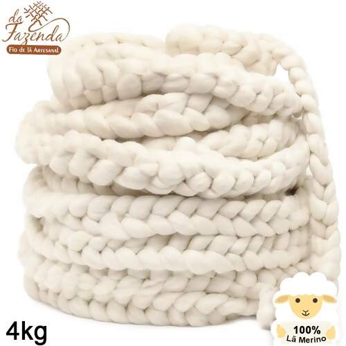 Lã Merino Penteada Gigante Natural 4Kg Fios da Fazenda