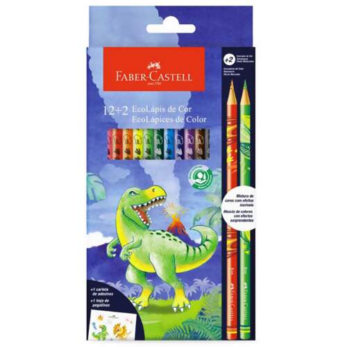 Lápis de Cor Ecolápis Faber-Castell Dinossauro 12 Cores + 2 Cores Misturinha