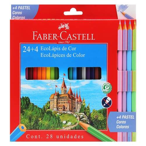 Lápis de Cor Faber-Castell com 24 Cores mais 4 Cores Pásteis