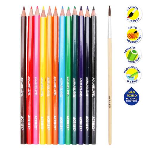 Descrição Lápis de Cor Sextavado Aquarelável Acrilex R.09652 12 Cores