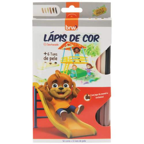Lápis de Cor Sextavado BRW LP0126 12 Cores + 6 Cores Tons de Pele FL