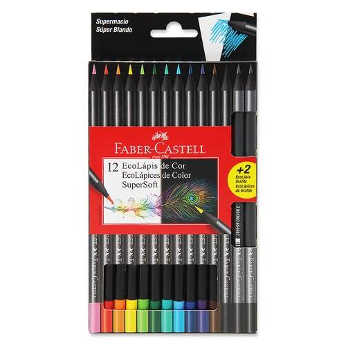 Lápis de Cor SuperSoft Faber-Castell 120712SOFT com 12 Cores + 2 Ecolápis Grafite