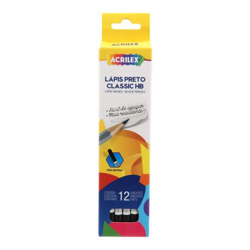 Descrição Lápis Preto Classic HB Acrilex R.09680 com 12 Und