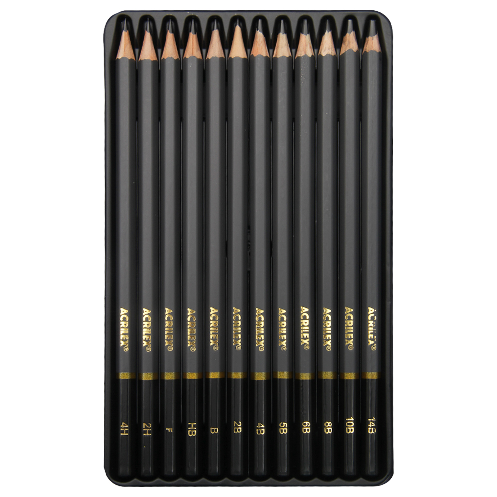O estojo conta com uma ampla variedade de graduações de grafite, de 4H a 14B, permitindo desde traços claros e delicados até tons intensos e profundos. Essa versatilidade torna o estojo perfeito para criação de nuances, contrastes e acabamentos profissionais em qualquer estilo de desenho.