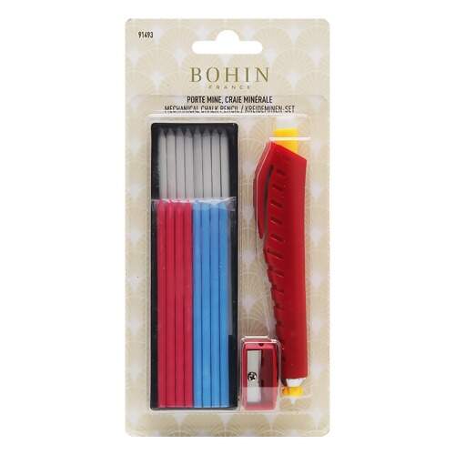 A lapiseira BOHIN permite delimitar as áreas de corte ou dobras. O seu fácil manuseamento permitirá fazer linhas muito precisas e mais marcadas do que com um giz de alfaiate tradicional. Você também pode afiar a mina com um apontador de lápis e, portanto, adaptar a espessura de sua linha de acordo com suas marcações.