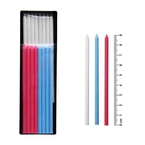Contém: 1 Lapiseira, 1 Apontador e 1 porta grafite com 16 minas coloridas: 8 brancas, 4 azuis e 4 rosas.