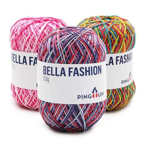 A Linha Bella Fashion Cores, possui um fio mais fino que a Bella "tradicional", sendo ideal para quando se deseja uma estrutura mais delicada em peças de tricô ou crochê. Produzida com algodão mercerizado, são ótimas para a produção de peças de decoração, peças de vestuário e acessórios.
