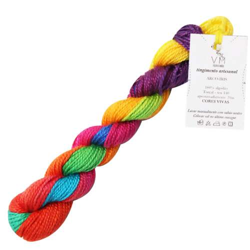 Linha Meada Tingida Arco Íris Cores Vivas VM Feito à Mão 20mts