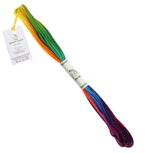 Detalhe Linha Meada Tingida Arco Íris Cores Vivas VM Feito à Mão 8mts