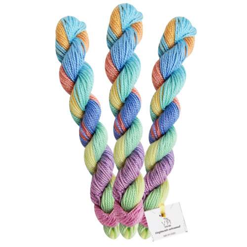 Descrição Linha Meada Tingida Arco Íris Tom Pastel VM Feito à Mão 20mts