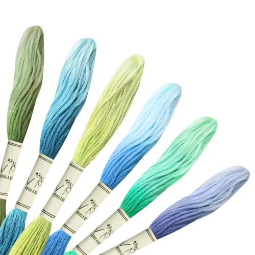 Linha Meada Tingida Degradê Verde e Azul VM Feito à Mão 8mts