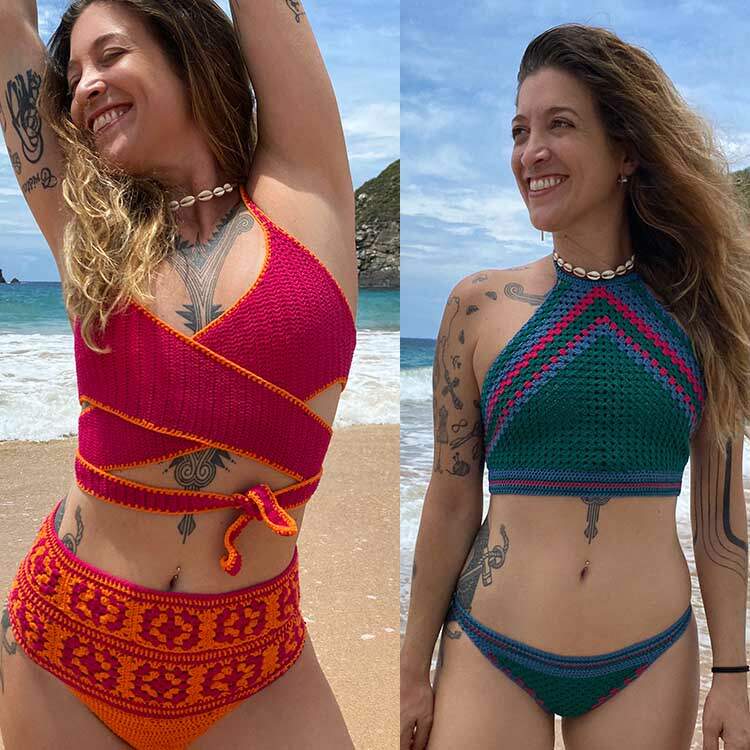 O Fio Praya é ideal para confeccionar biquínis, bodys, maiôs e tops que valorizam o corpo com ajuste perfeito. Produzido com a mesma composição dos tecidos de moda praia, garante elasticidade, firmeza e secagem rápida, sem lacear. Versátil e moderno, é perfeito para criar biquínis de crochê cheios de estilo e conforto, ideais para o verão.