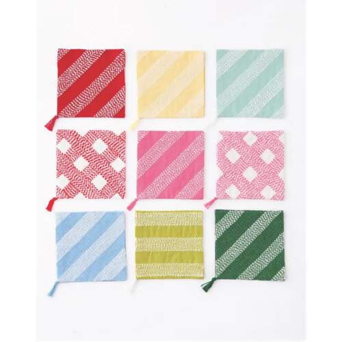 - Porta-copos: listrado, Hitomezashi (método de bordado sashiko)