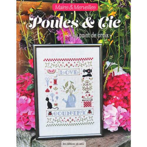 Livro Poules e Cie Au Point de Croix- Hens & Co. em ponto cruz