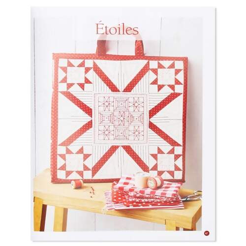 O patchwork está associado ao Redwork, bordado vermelho de estilo muito particular com padrões requintados feitos em ponto reto. É uma boa ideia de Kristel Salgarollo! Resultado: magníficos trabalhos acolchoados com blocos remendados e blocos bordados. Uma bela criativa e estética! Algo para aproveitar os amantes do patchwork e do bordado... Especialmente considerando os tons brancos escolhidos para os tecidos utilizados e os padrões bordados e os cores favoritos das bordadeiras e quilters! 7 modelos em vermelho e branco: 2 amostras grandes e 5 acessórios.