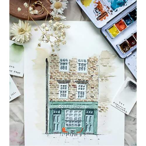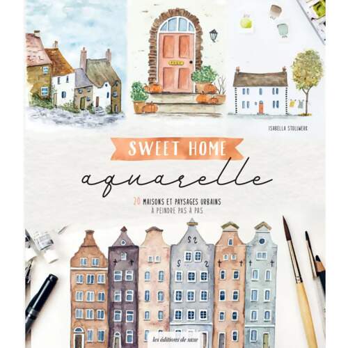 Livro aquarela: 20 modelos de casas aconchegantes e paisagens urbanas. Ao longo das 128 páginas, você aprende a deixar a perspectiva construir-se naturalmente com uma infinidade de detalhes para criar uma série de ilustrações variadas sobre o tema da casa em aquarela: