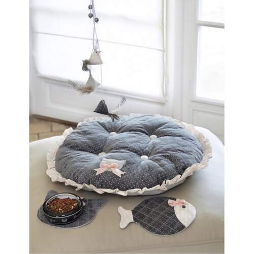 Sabine Benoit, oferece fazer objetos do cotidiano para o seu gato! Esquemas para modelos passo a passo e tamanho real que guiam eficientemente na realização desses trabalhos originais como: almofada, bolsas, brinquedos, conjuntos em tecidos de algodão e veludo, tenda, tapete, rede e case em veludo e tecidos de algodão com anis e padrão de camuflagem.