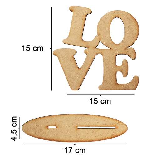Descrição Love de MDF com Base 1 Ref.11103 15x15cm
