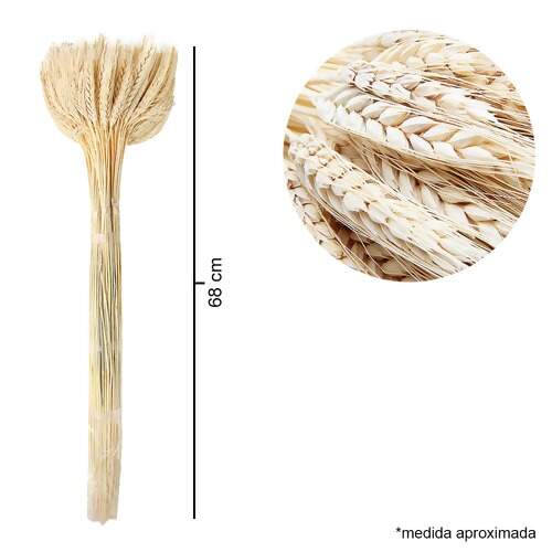 Trigo seco desidratado, alvejado para decoração. Muito utilizado em casamentos, convites, decorações de igrejas, mesas, vitrines, decorações natalinas, mesa de ceia, artesanato e arranjos em geral.