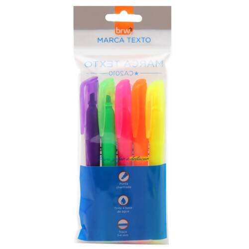 Descrição Marca Texto Fluorescente BRW CA2010 com 05 Cores