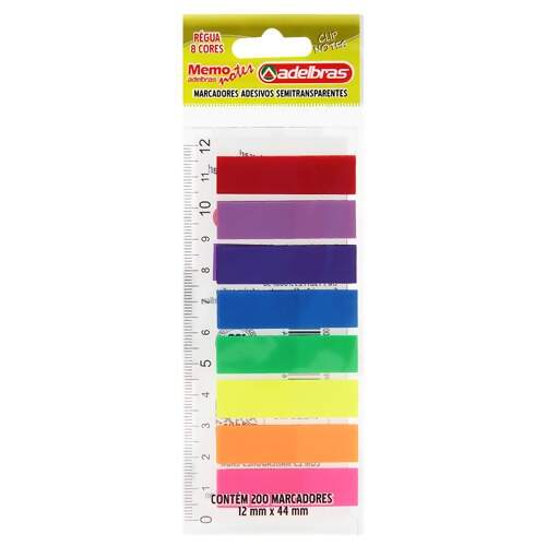 Descrição Marcador de Página Adesivo Adelbras 12mmx44mm com 8 Cores