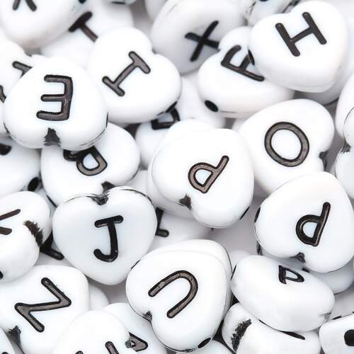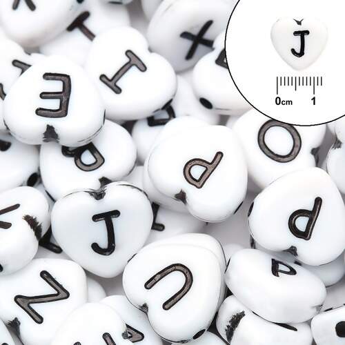 Descrição Miçanga de Letras Coração 12mm Branca com 48g