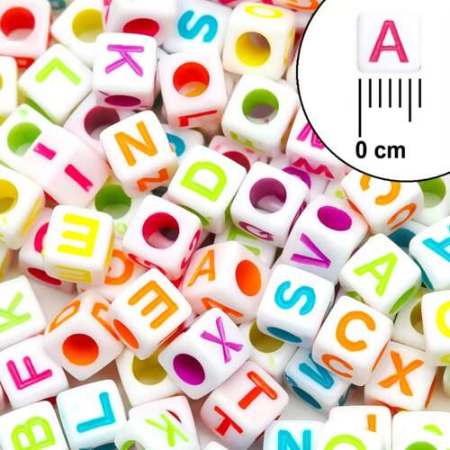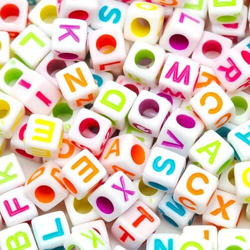 Descrição Miçanga de Letras Quadrada 06mm Colorida com 48g