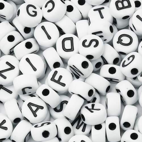 Miçanga de Letras Redonda 06mm Branca com Preta com 48g