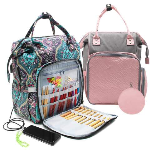 Mochila de Armazenamento de Fios, Crochê, Tricô com USB FL