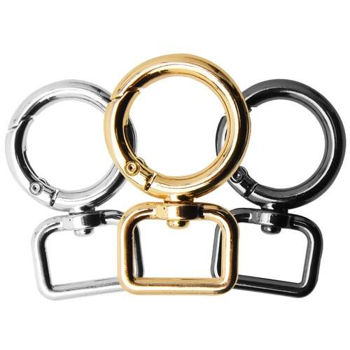 O Mosquetão Redondo combina segurança, qualidade e beleza para complementar o design da sua bolsa handmade. Com um formato tradicional e clássico, ele é perfeito para prender uma alça ou para finalizar a peça com um lindo chaveiro.