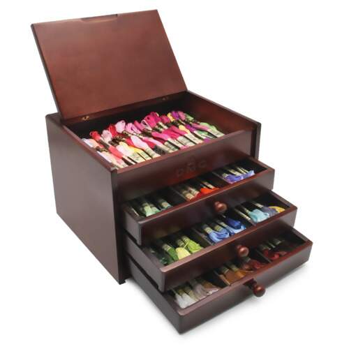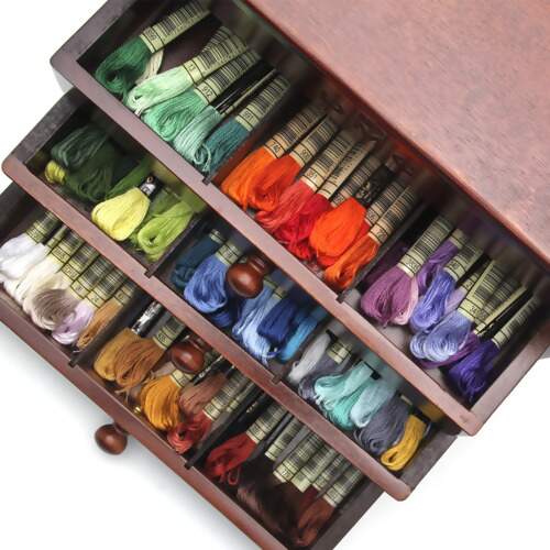 Móvel de Madeira Vintage DMC 117MC com 120 Cores da Linha Mouliné Spécial